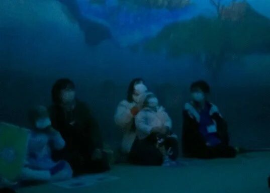 午後は、会場を小児センターの多目的ホールに移し、スクリーンを使ったプログラムが実施されました。ベッドごと移動して参加した子どもたちも、寝たままの状態で海の映像とブッチくんの解説に深く集中し、聞き入る様子が見られました。保護者の方からは、「普段とは違う、楽しんでいる表情の変化を見ることができた」と喜びの声が寄せられました。