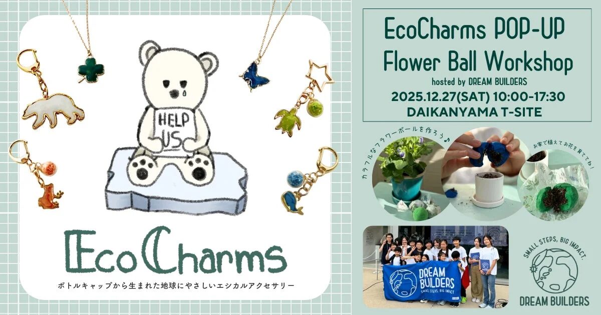 今回は、子どもたちの小さな一歩が未来を変える、とても素敵なイベントのお知らせです。2025年12月27日(土)に、小中学生が企画する体験型イベント「EcoCharms POP-UP × Flower Ball Workshop」が代官山T-SITEで開催されます。