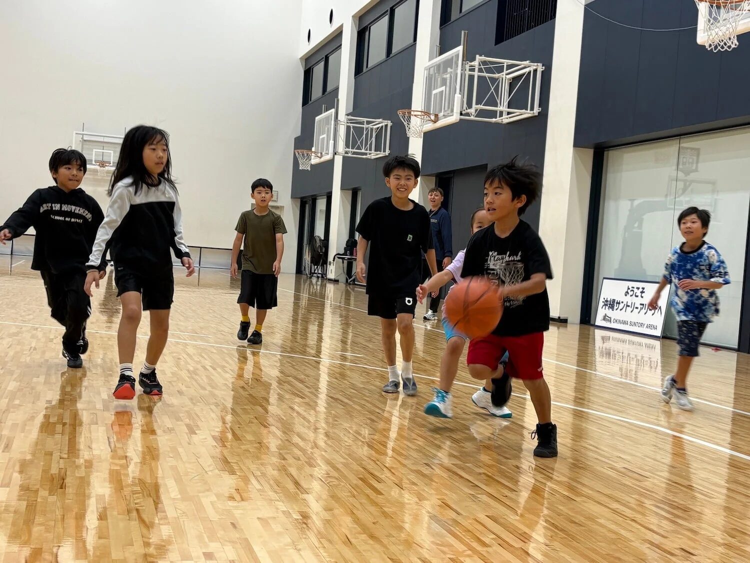 スポーツをきっかけに、違う地域の子どもたちが自然と仲良くなり、協力し合いながら楽しく活動することができました。沖縄サントリーアリーナでは、これからも地域の子どもたちの交流の場としてスポーツの機会を提供し、スポーツを通じた交流と地域貢献に努めていくとのことです。