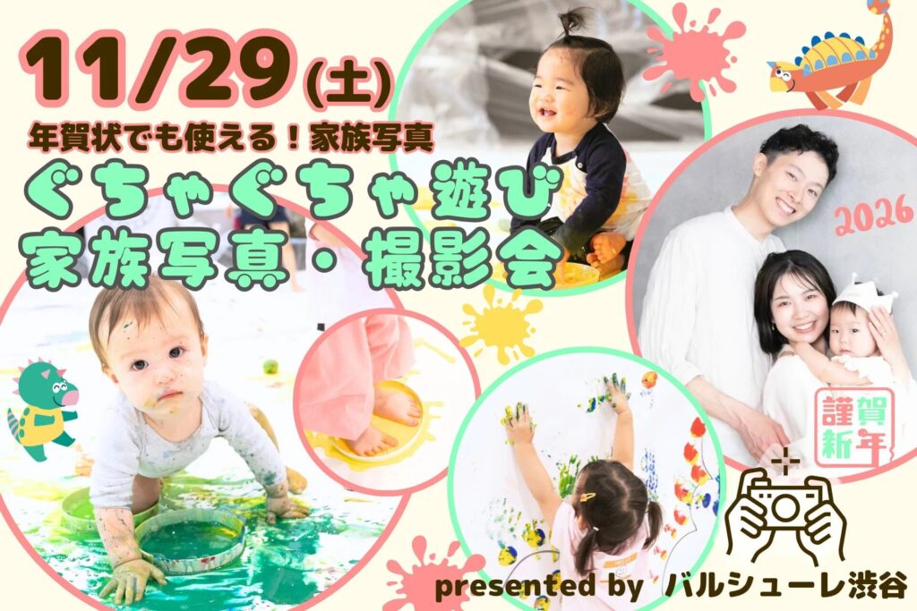 2025年11月29日(土)に渋谷で「ぐちゃぐちゃ遊び × 家族写真撮影会」が開催されます。年賀状にもぴったりの白背景での家族写真撮影に加え、遊びの前後で変わるお子さんの表情や家族の姿をプロのフォトグラファーが記録します。心と体を育むアート体験と、かけがえのない家族の思い出作りに参加してみませんか。