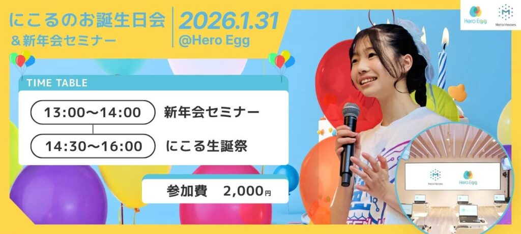 DX教育施設「Hero Egg」のプロデューサーを務める中学生起業家、近藤にこるさんが15歳を迎えるにあたり、これまでの活動の振り返りと2026年の未来構想を発表するイベントが開催されます。セミナーと誕生日会を通じて、次世代の若き才能が描く未来に触れる機会となります。